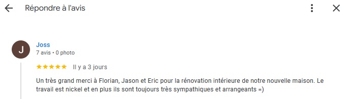 Morale de l'histoire : la prochaine fois que vous recherchez un artisan pour faire des travaux chez vous, ne regardez pas uniquement une note Google, prenez le temps de lire quelques commentaires et les réponses, interrogez votre entourage, consultez ses réalisations sur internet ou les réseaux sociaux et, surtout, prenez rendez vous avec lui pour échanger en direct sur votre projet, vous vous ferez une opinion plus juste.
